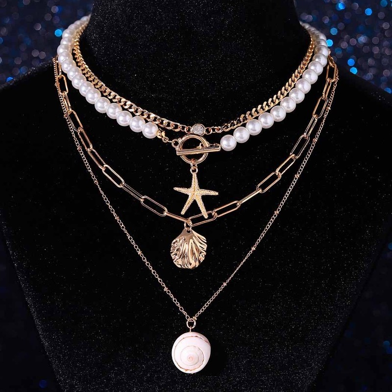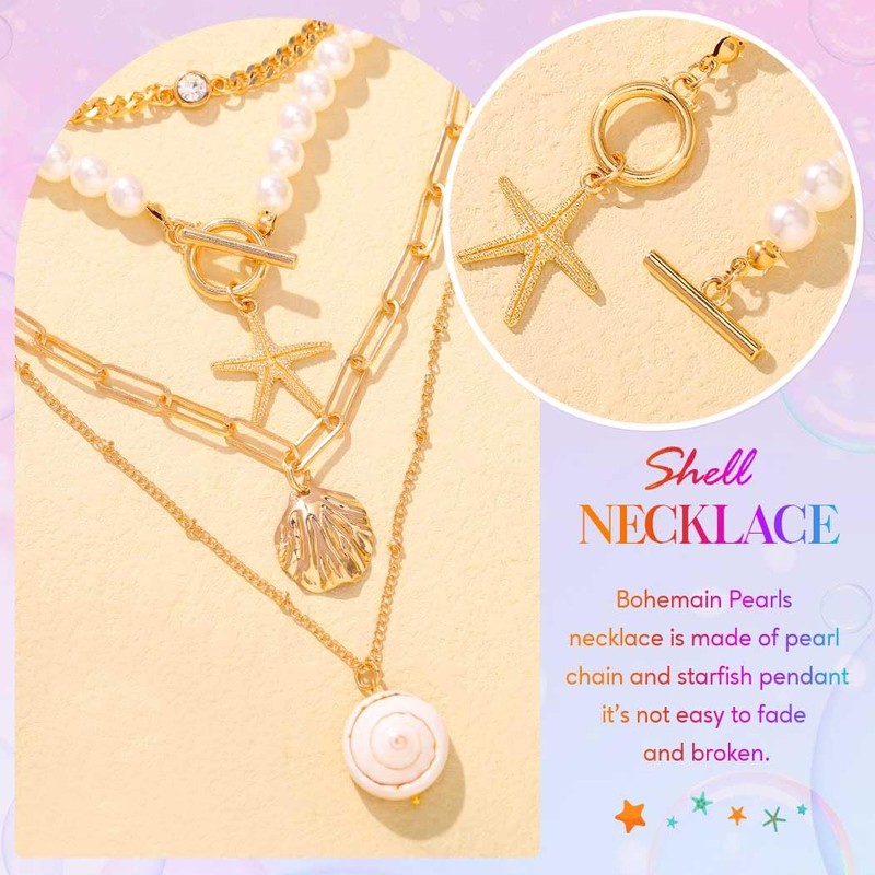 Fashband Boho Seestern-Halskette mit mehreren Perlen, Muschel-Halsketten, Strand-Halsketten für Damen