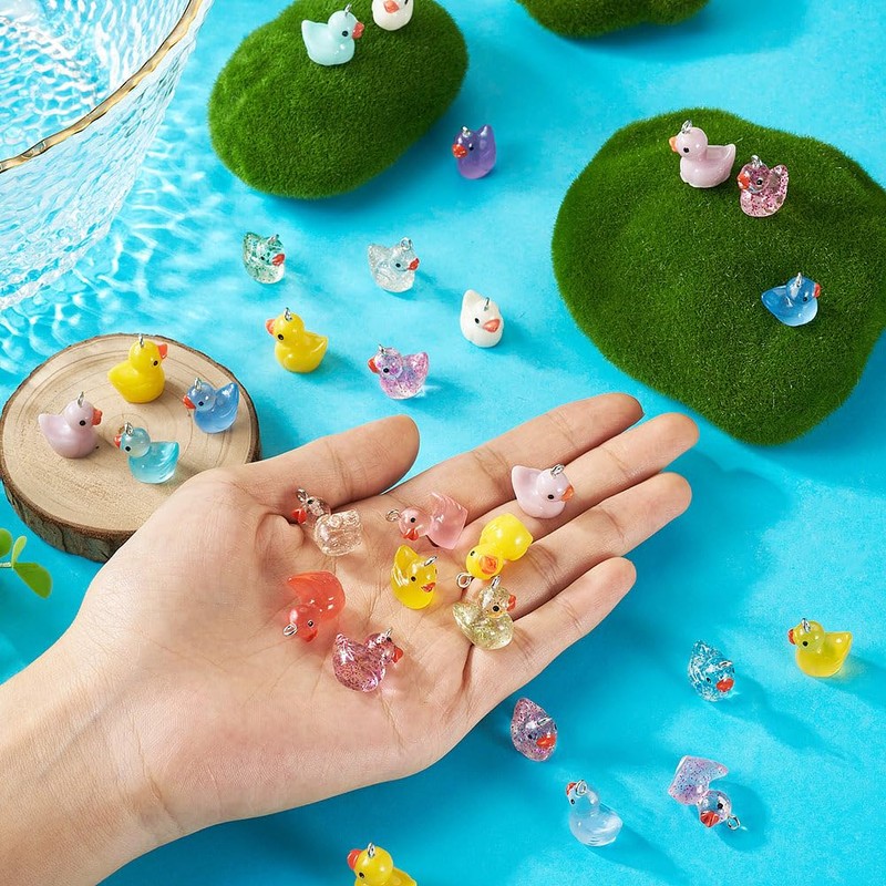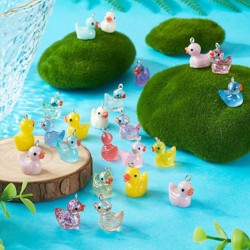 FASHEWELRY 30 Pcs Mini Resin Ducks Resin Charms With Platinum Iron Loop Plastic Ducks Charms Bulk Assorted Kandi Charms for Bracelet Necklace Earrings Keychain Crafts Jewelry Making