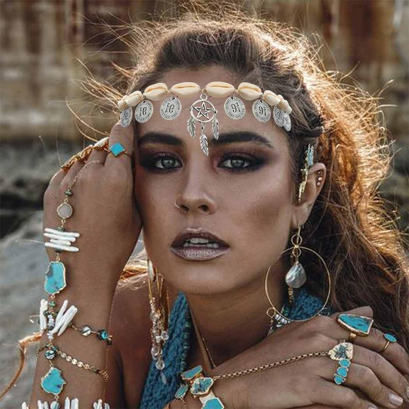 Fashey Headchain Shell Headpiece Star Pendant Hair Bands Prom Festival Forehead Chains Wedding Hair Accessories for Women and Girls