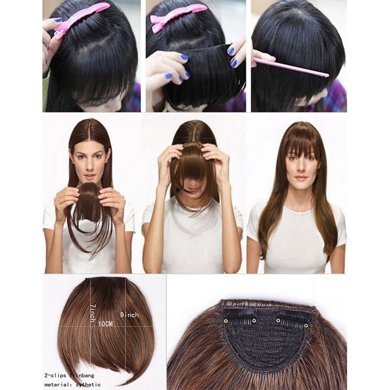 - ❤ It's normal if some hair fall off when your first use because the hair bangs is sewn by hand;Each bangs has been sewn to 2 Clips for easy placement and a tight hold. Ready for a change of your hair style?