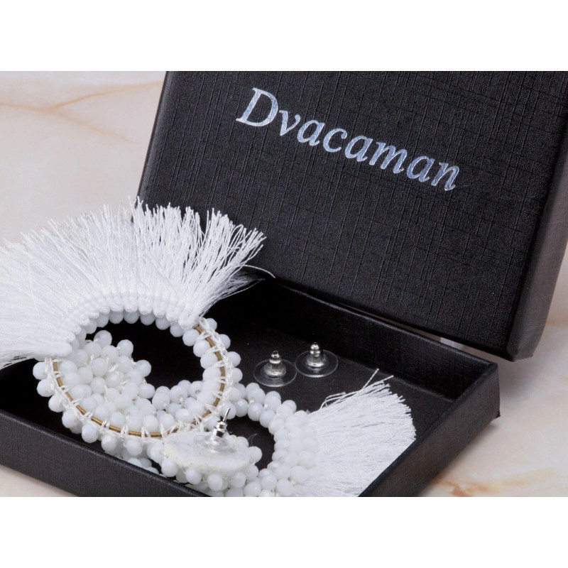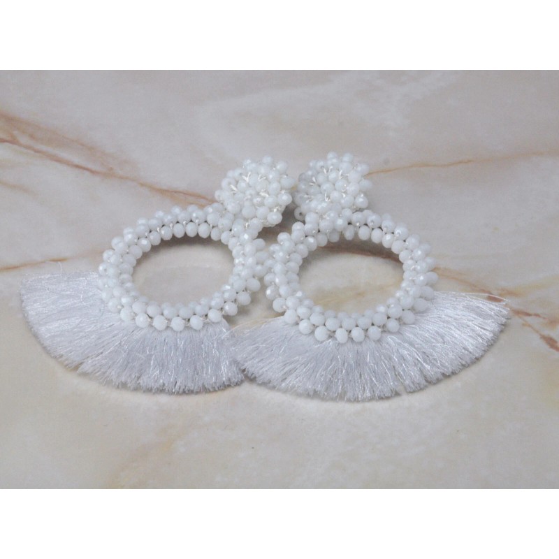 Fashion Jewelry White Beaded Tassel Statement Earrings