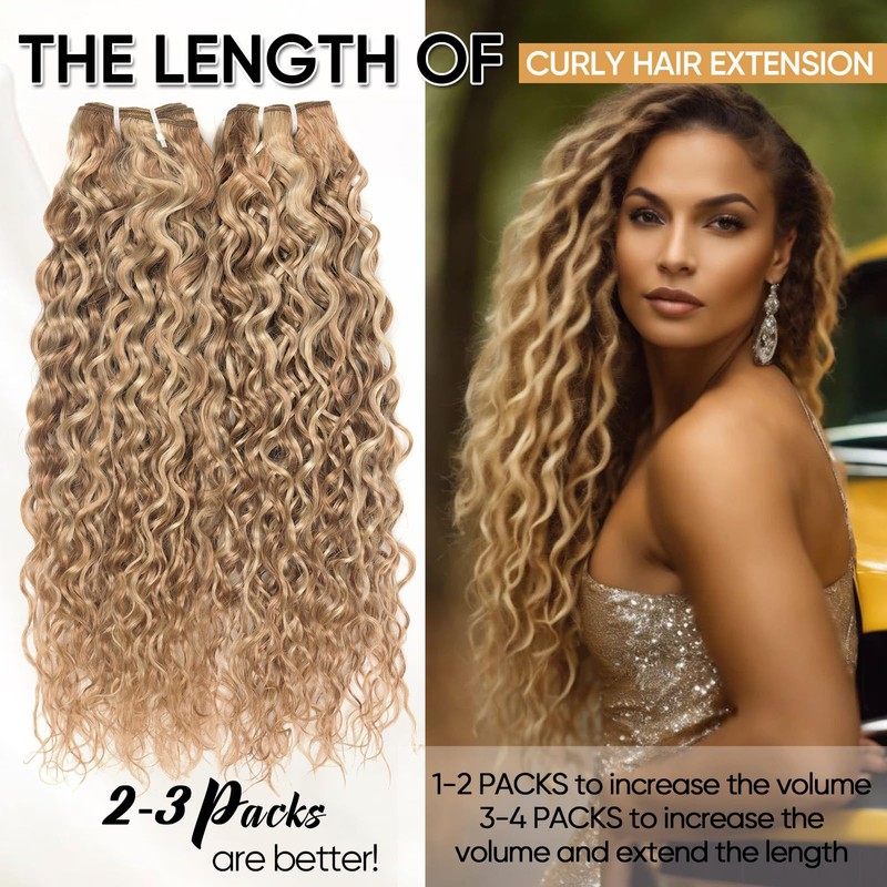 FASHION LINE Brazilian P27/613 Water Wave Blonde Human Hair Extensions Unprocessed Human Hair Bundles Weft 1PC 100g Piano Color (22")
