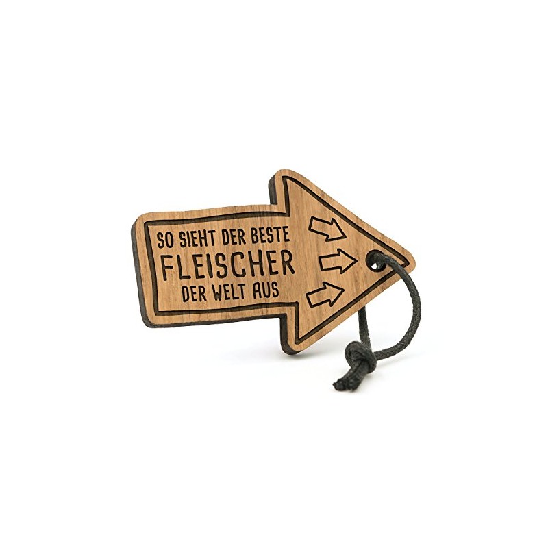 Fashionalarm Keyring "So sieht der Beste Fleischer der Welt" [German Language] Wooden Arrow with Engraving Gift Idea Butcher Profession Job Work