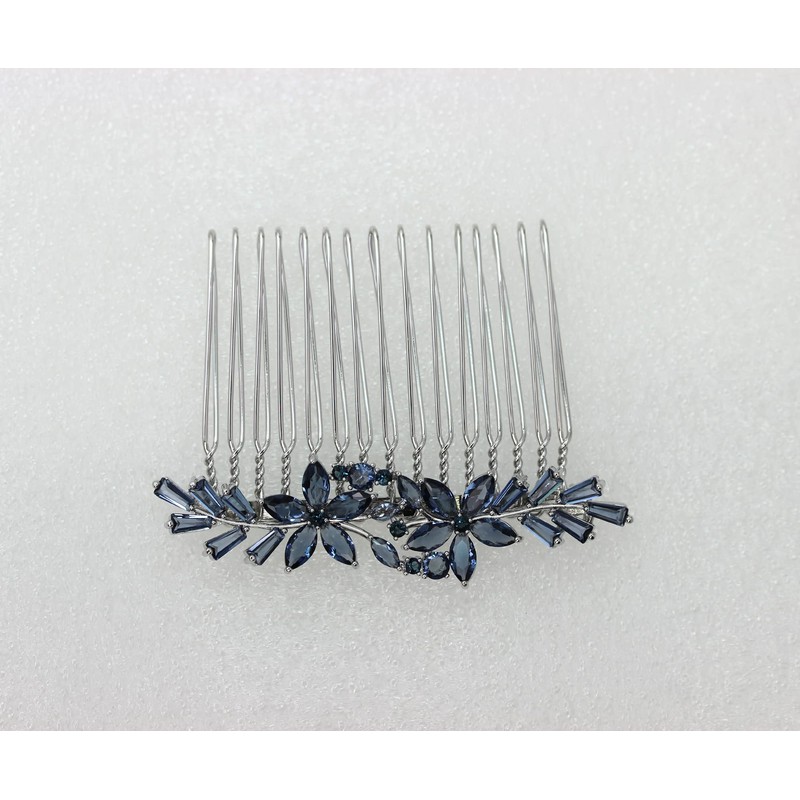 Faship Gorgeous Dark Blue CZ Crystal Floral Hair Comb