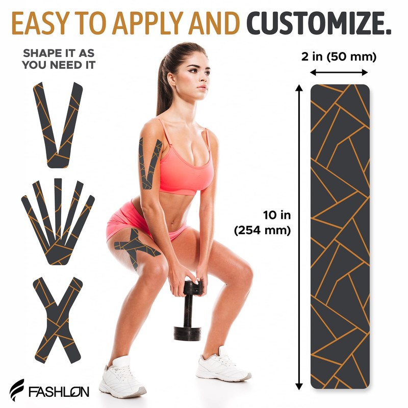 FASHLON PRO Synthetic Kinesiology Tape (2 Rolls, 40 Precut Strips, Ultra-Breathable Synthetic Fabric, Safe for Sensitive Skin) Elastic Bandages, Hypoallergenic K Tape Kinesiology Therapeutic Tape Waterproof, Premium Sports Tape Athletic Tape Physio Tape