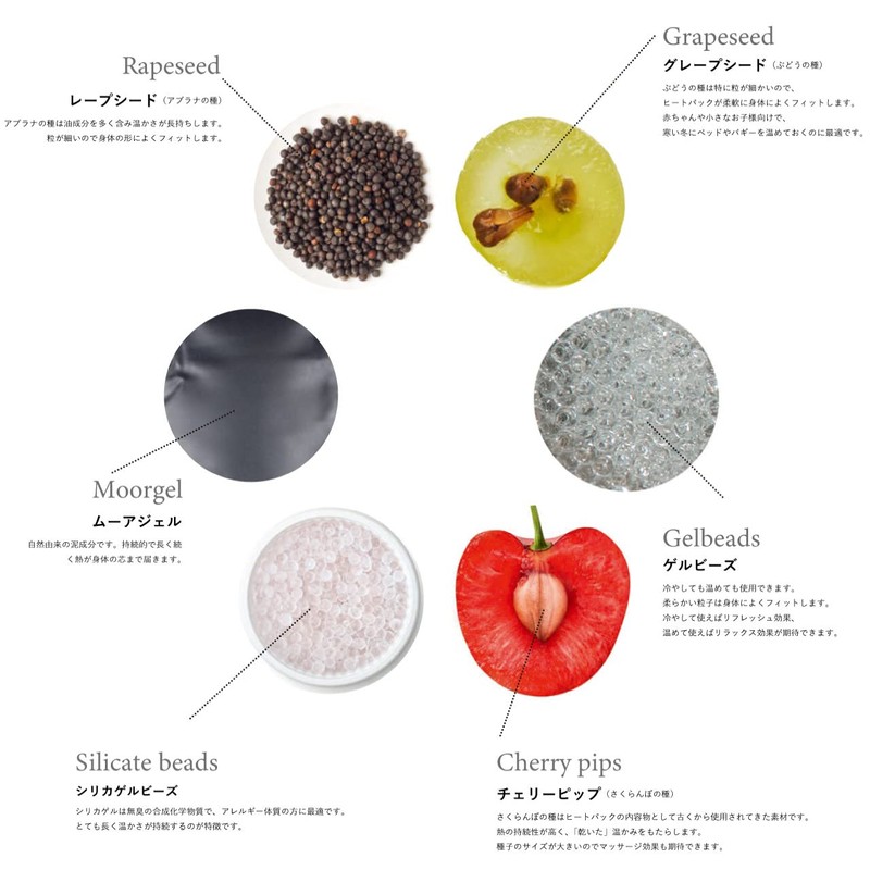 - Rapseed (Abrana seeds) contains many oil ingredients for long lasting warmth. The fine grain fits the shape of your body. You can use it again and again, without any cords, so you can place it where you want it to put it on and gently warm your stiff shoulders and waist. Reusable, environmentally friendly ecology product. High quality and functionality make this a popular Fascie heat pack