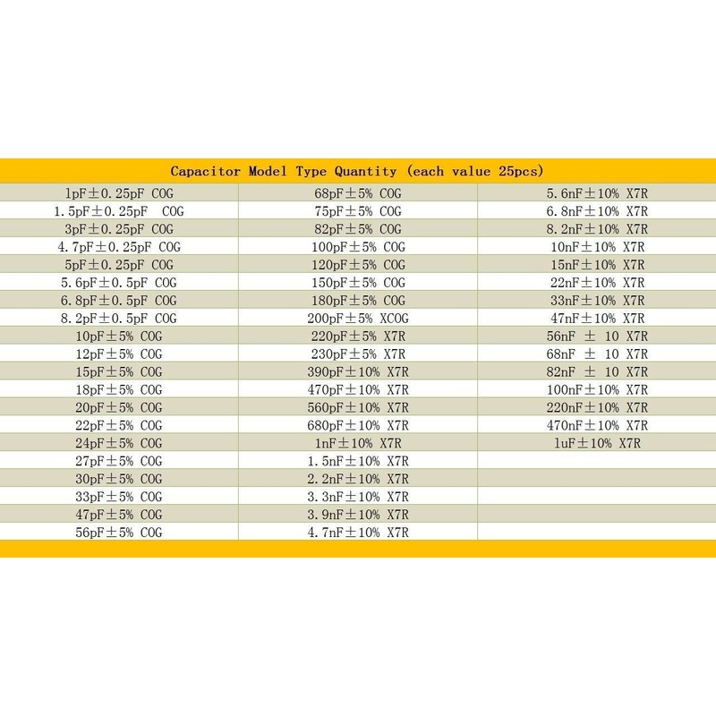 - 0603 SMD Capacitors, 55 types, total 1375pcs.