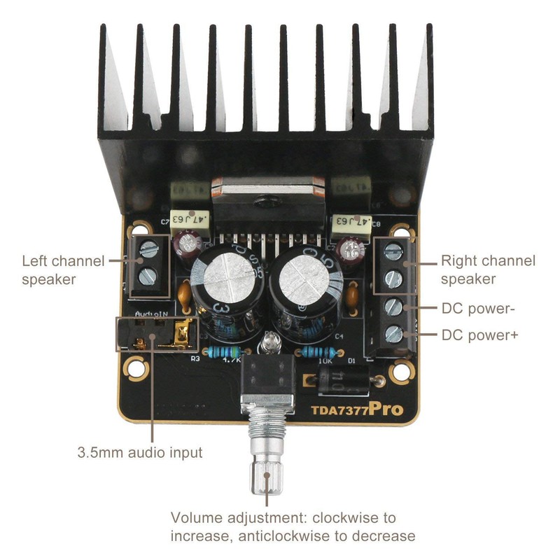 - Safe Protection: the amp board is designed with input reverse connection protection, short circuit protection, over current protection, over heat protection.