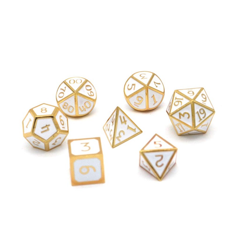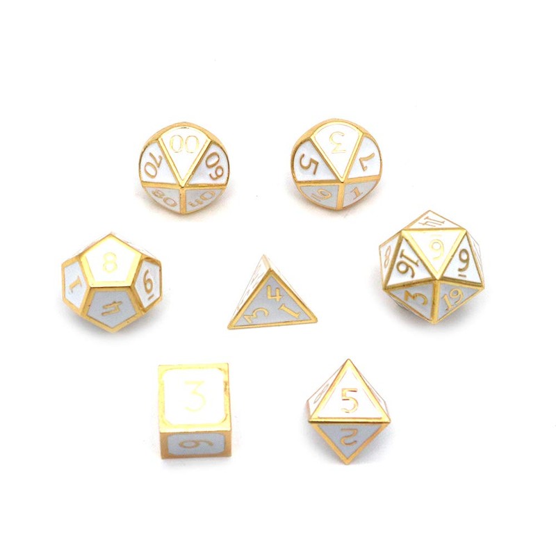 Fasizi Metal Polyhedral Dice Set with Black Storage Bag for Role Playing Games Dungeons and Dragons D&D Math Teaching (White)