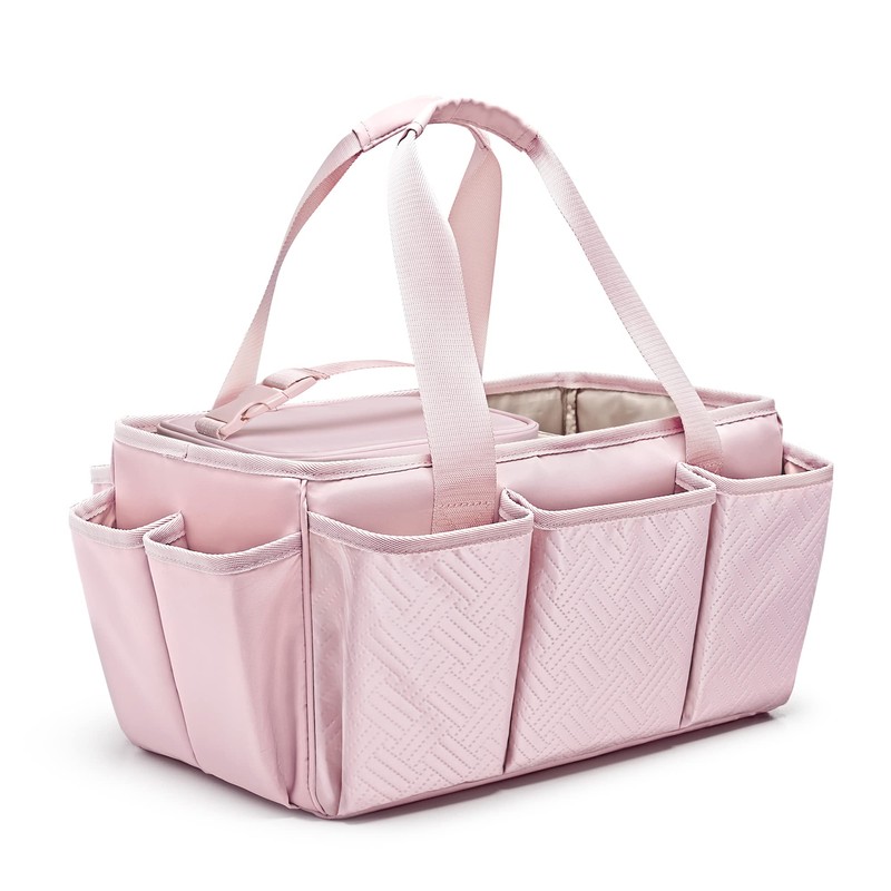 - VERSATILE BAG: Dimensions 14.6x7.9x7.9 inches. This practical and chic caddy organizer can be used as breast pump caddy, diaper caddy organizer, car baby caddy or nursery storage basket bin. Making it a baby registry must haves items or an ideal baby shower gift for new moms.