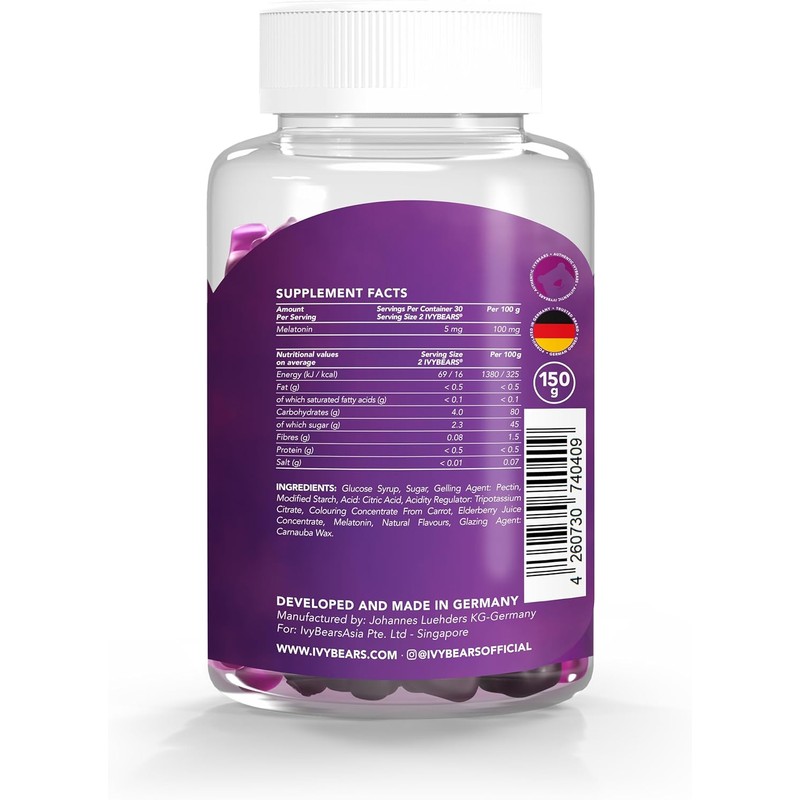 • Promotes your natural sleep rhythm: 0.5 mg melatonin per gummy bear helps you fall asleep faster and enjoy a restful night.
