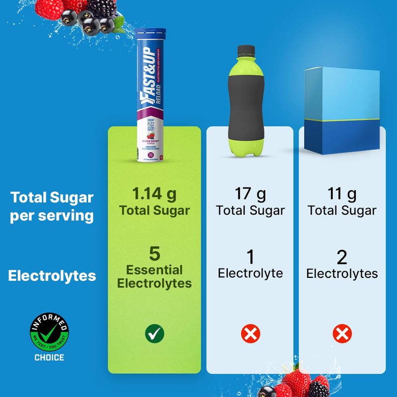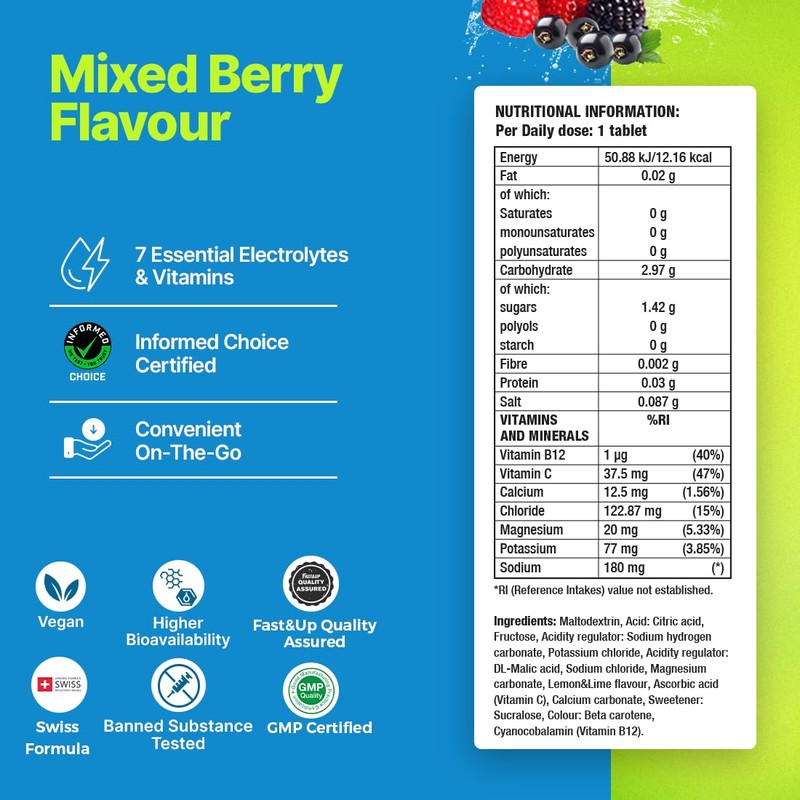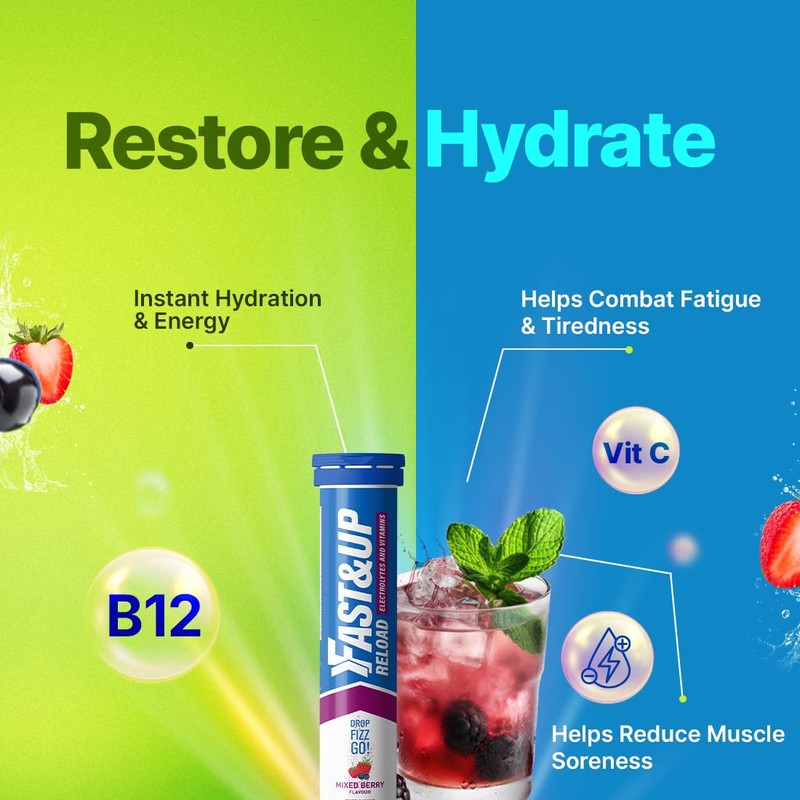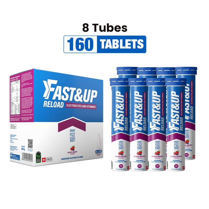 Fast&Up Reload Megapack – 160 Effervescent Tablets – Mixed Berry – Instant Electrolytes for Rapid Hydration & Energy - Added Vitamin C & B12 for Performance, Wellbeing, Travel & Recovery – Vegan