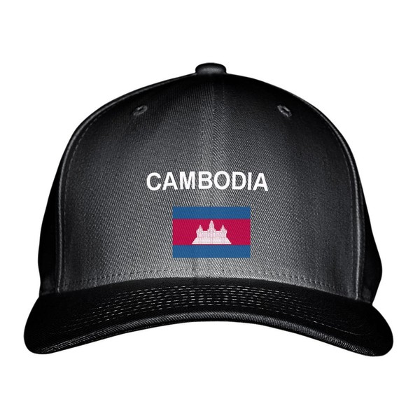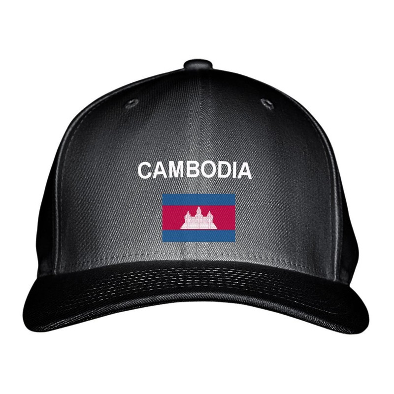 Fastasticdeal Cambodia Flag Embroidered Adjustable Structured Hat Cap Black