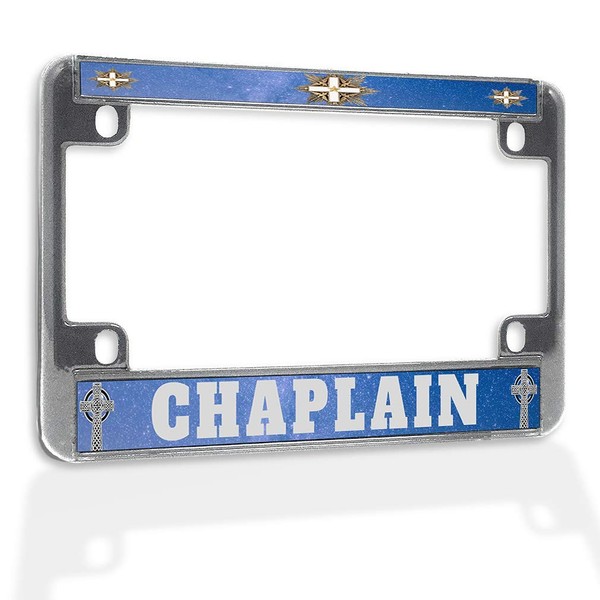 Fastasticdeals Metal Insert Bike License Plate Frame Chaplain Religious Term A Weatherproof Motorcycle Accessories Chrome 4 Holes Solid Insert