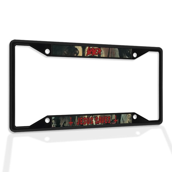 Fastasticdeals Metal Insert License Plate Frame Slayer Jesus Saves Weatherproof Car Accessories Black 4 Holes Solid Insert