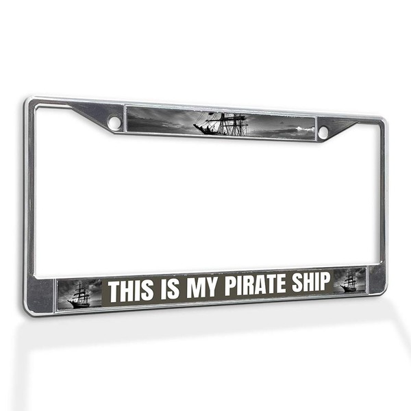 Fastasticdeals Metal Insert License Plate Frame This is My Pirate Ship Weatherproof Car Accessories Chrome 2 Holes Solid Insert