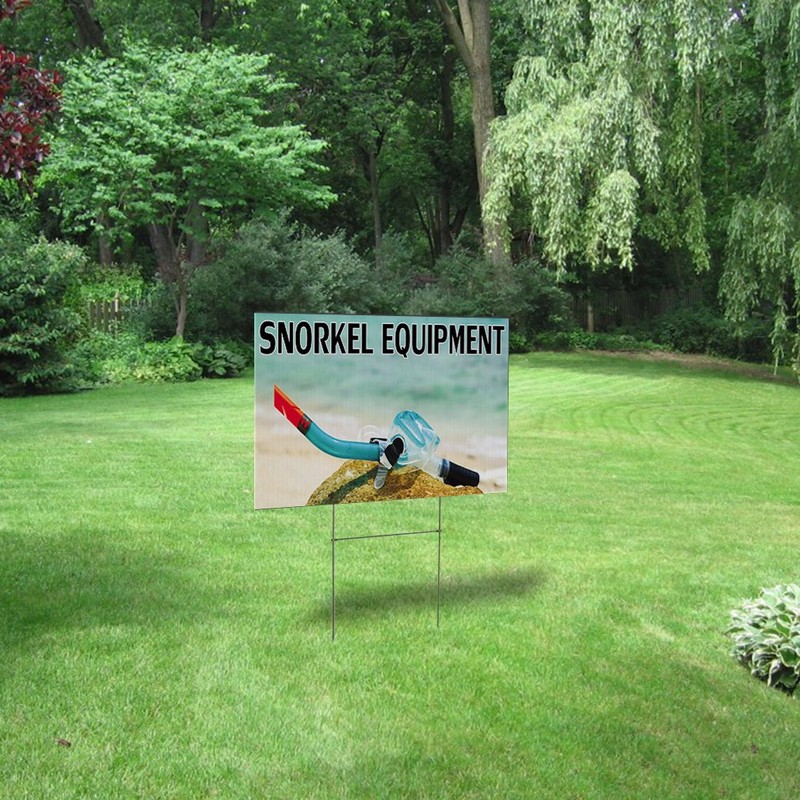 Perfect as: snorkel equipment yard sign, snorkling sign for yard, snorkel equipment business signs spring, snorkling tools signs with stake, or snorkling equipments corrugated plactic sign. We print with high quality inks with vivid colors making sure your advertisement sign is being seen!