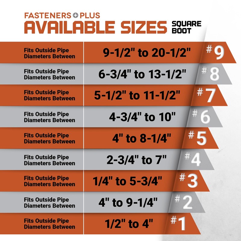 - KIT INCLUDES - (1) #6 Square EPDM Flashing | (1) NovaFlex Roof Sealant | (45ct) 1/4" x 7/8" Roofing Stitch Screws | (1) 5/16" Magnetic Socket Nutsetter | Base Width: 12" | Pipe OD: 4-3/4" - 10" | Max Temp: 275 degrees Fahrenheit.