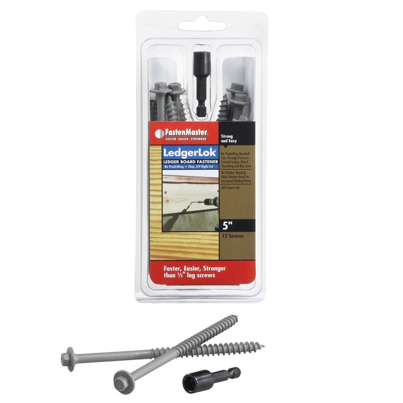 Save time, money, and labor costs. LedgerLOK is the first fastener engineered to attach deck ledger boards to the rim board of the house with no predrilling. No need to predrill and hand-ratchet in 1/2 inch galvanized lags and washers. LedgerLOK also has stronger shear values than 1/2 inch galvanized lag screws. Plus, with LedgerLOK's smaller shank diameter, even a cordless drill (14.4 volts or higher) zips them right in, saving on battery life and additional tooling costs. Each pack size contains a free 5/16 inch driver bit. LedgerLOK fasteners are American made.