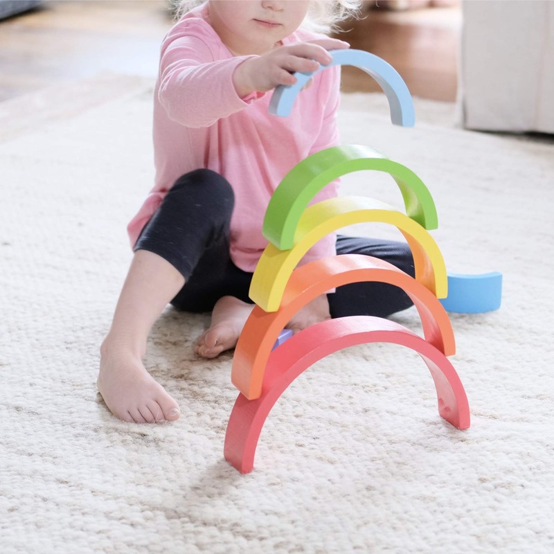 - A BEAUTIFULLY UNIQUE, tactile color-learning experience! 7 arches to stack and build a rainbow