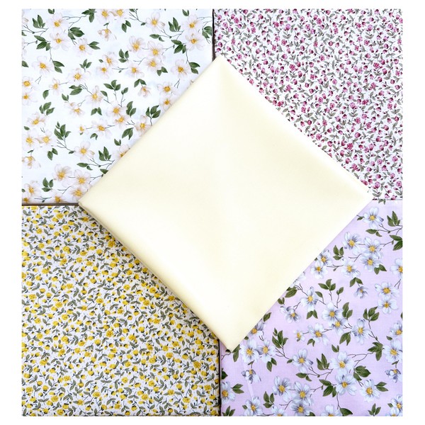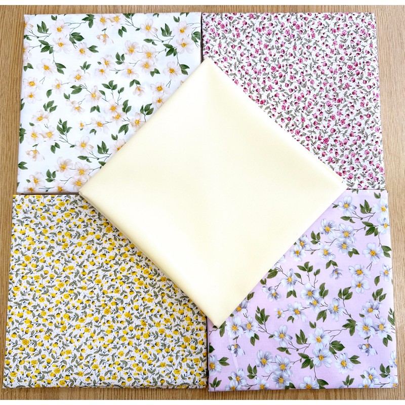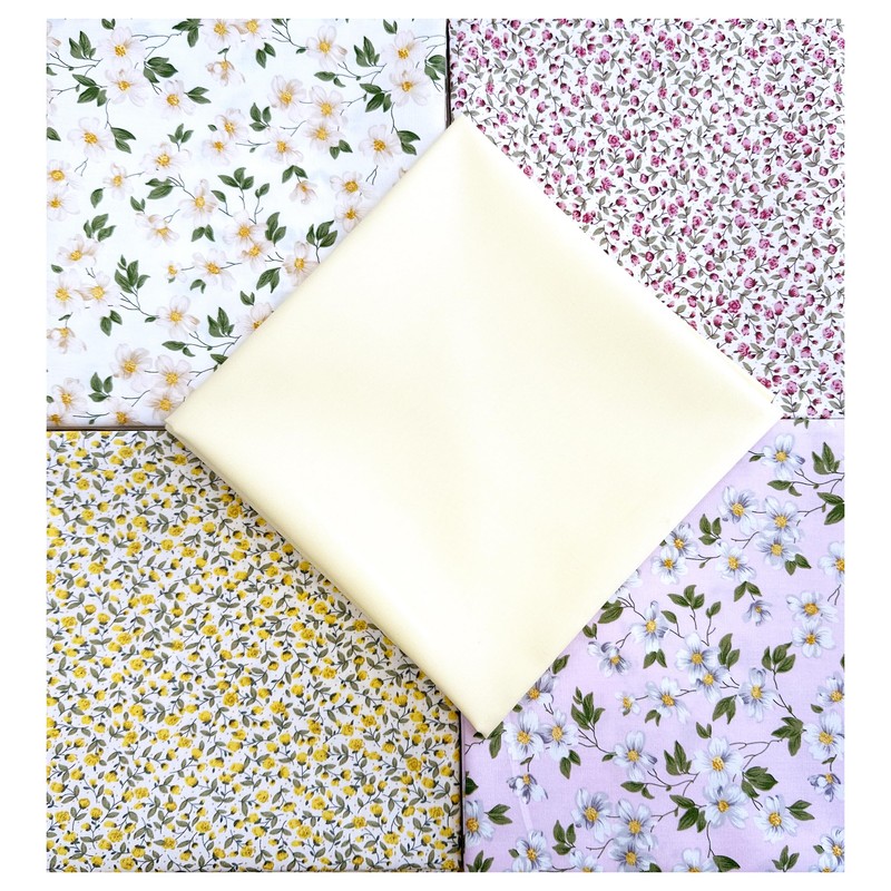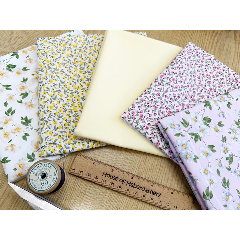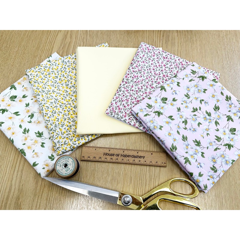 Fat Quarter Bundle - Pretty Pink & Yellow Ditsy Floral Mix Bunting Craft Fabric Material