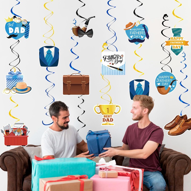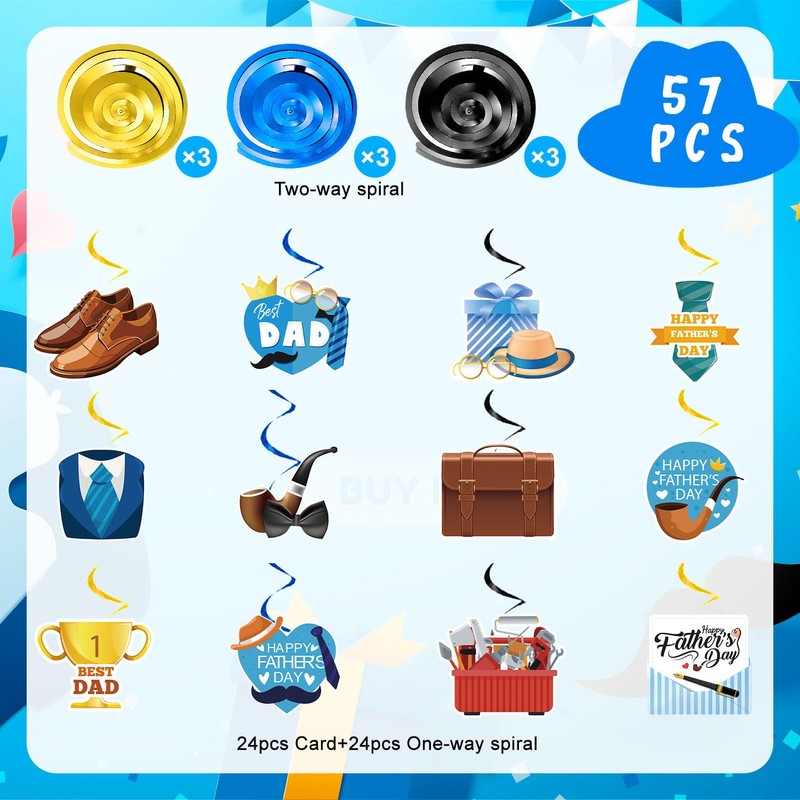 - Happy Father's Day Party Decorations: You will get 57 pieces of father birthday foil ceiling hanging swirls, including 12 single swirl father day hanging spirals, and 3 double spiral foil swirl decorations in different colors (gold, blue, black)