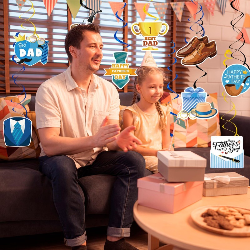 - Eye-Catching: Fathers day hanging spiral incorporates many father's day elements, with bright colors, and matched with foil swirls, it adds a warm atmosphere to the father's day party and attracts the father's attention