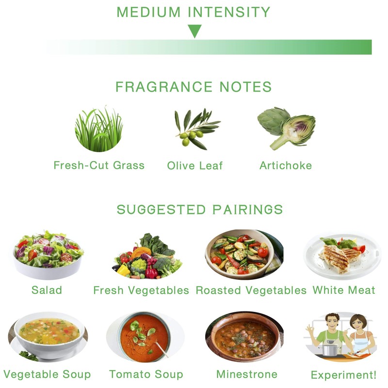- New 2023-2024 Harvest (November 2023) Authentic Fresh Taste – green olives with notes of fresh-cut grass and olive leaf; medium peppery finish; smooth after-taste; best before 1/31/2026