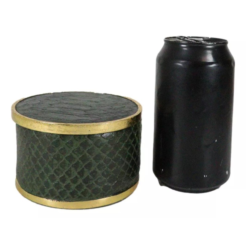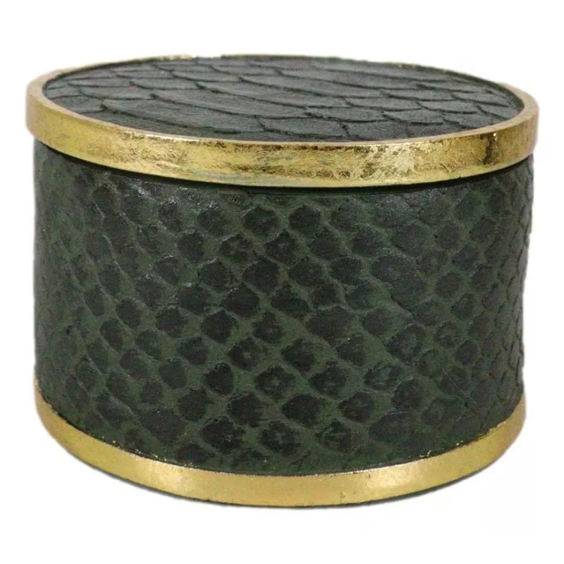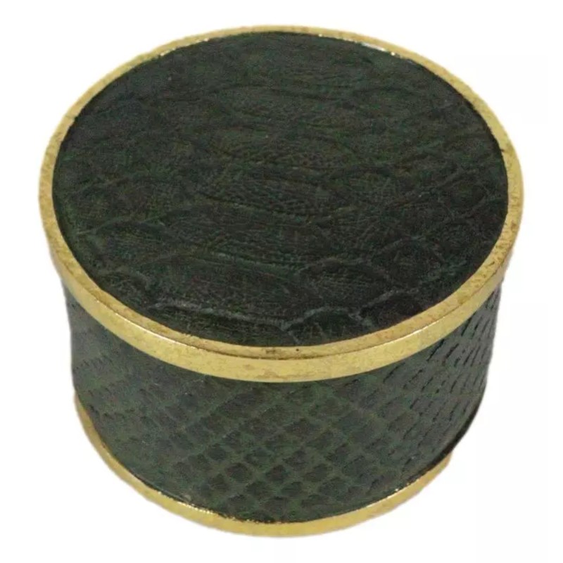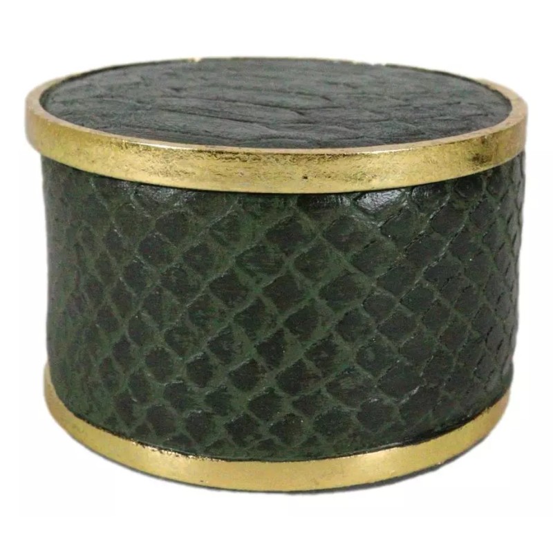 Faux Crocodile Pattern Green Print With Gold Trim Round Decorative Jewelry Box