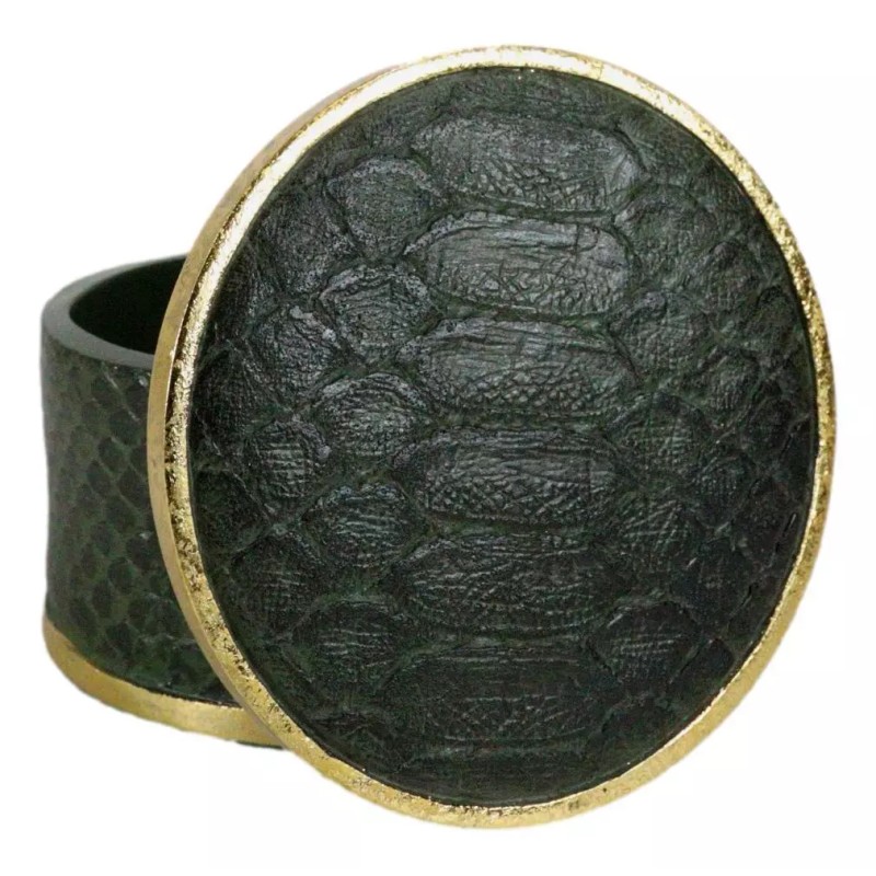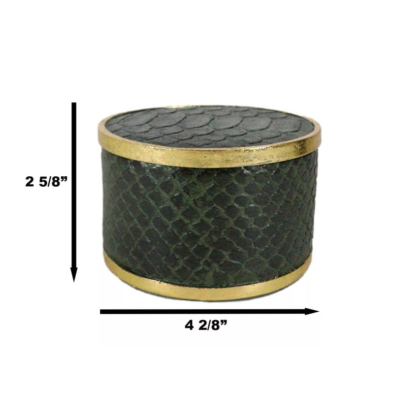 Ebros Faux Crocodile Pattern Green Print With Gold Trim Round Decorative Jewelry Box