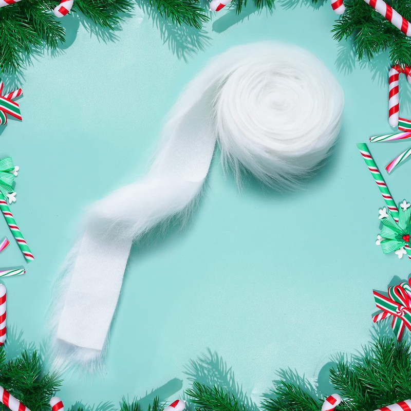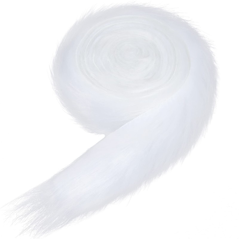 Faux Fox Fur Fabric Shaggy White 2 Inch x 6Yard Faux Fur Trim Ribbon Christmas Trimming Faux Fur Fabric Roll for Christmas Tree Decor or DIY Craft Costume (2 inch x 118 inch, White)