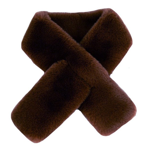 Faux Fur Pull-Through Women's Winter Neck Scarf Rectangle Fluffy (Dark Brown)