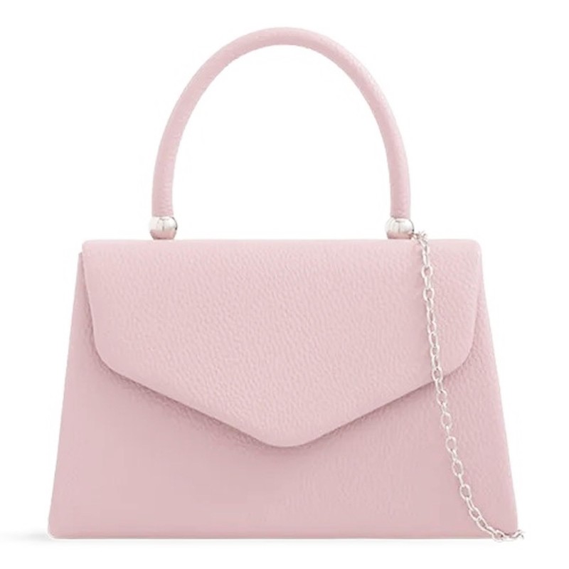 Faux Leather Plain Tote Style Top Handle Bridal Prom Wedding Evening Clutch Party Purse Hand Bag (Pale Pink)