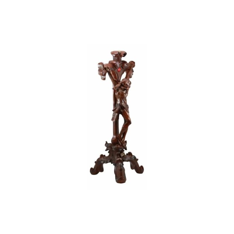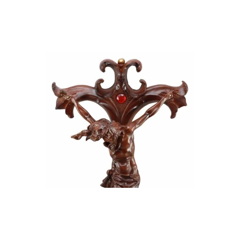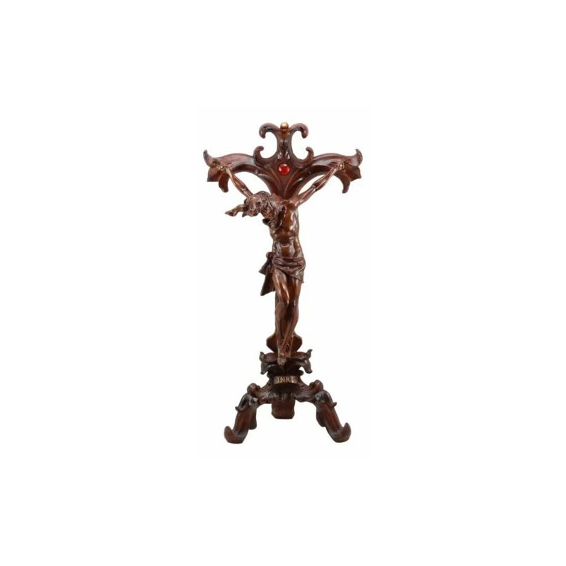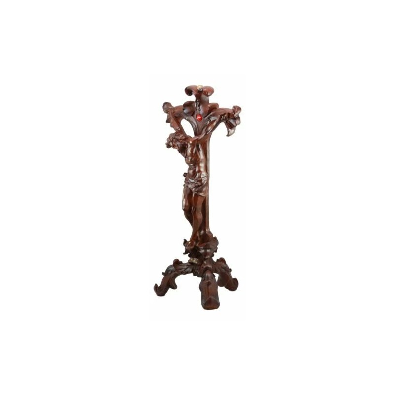 • This Crucifix With Base Statue is made of polyresin, hand painted and polished individually to look like mahogany wood.