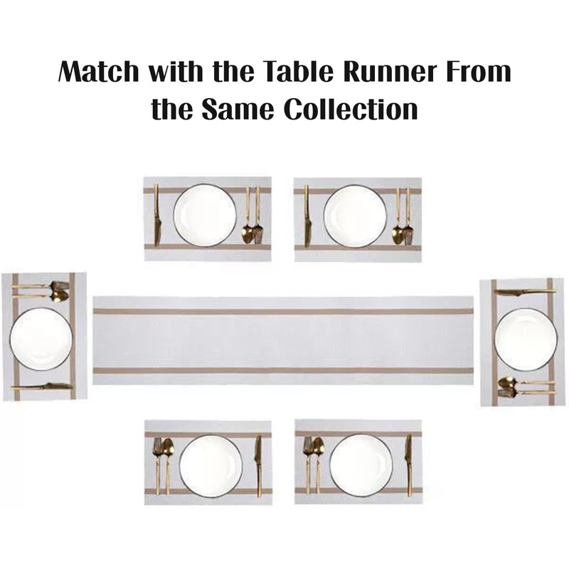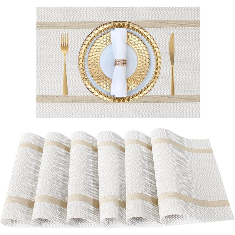 FAVE Placemats Set of 12 White Placemats Woven with Golden Thread Vinyl Place Mats Heat Resistant Table Mats Set of 12 High Texture Place Mats for Kitchen Table (White, 12"x18"-12PCS)