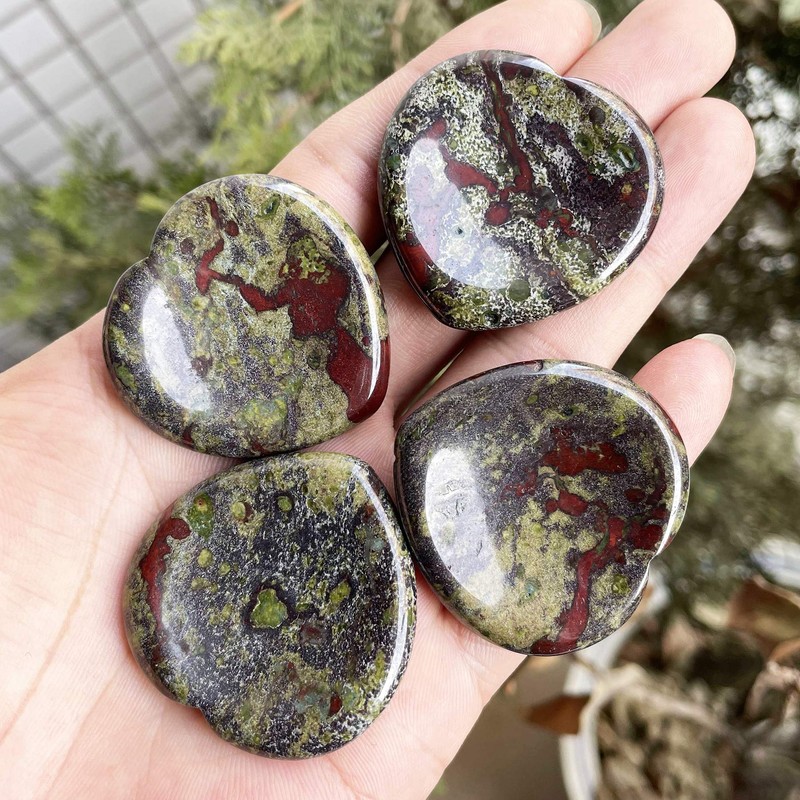 favoramulet Heart Love Crystal Thumb Worry Stone Pocket Palm Stones for Anxiety Therapy Geometry Chakra Healing Reiki Balancing, Dragon Bloodstone