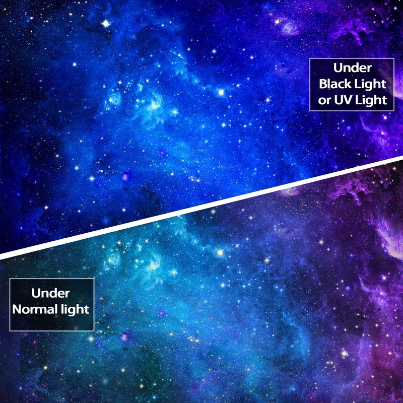 - 【Unique Design】:This cosmic nebula blacklight tapestry features a blue purple tone and presents a mysterious and psychedelic effect under black light. Under the reflection of uv light, a starry night sky dreamlike atmosphere is created in the universe, allowing people to feel the infinite charm of the universe.