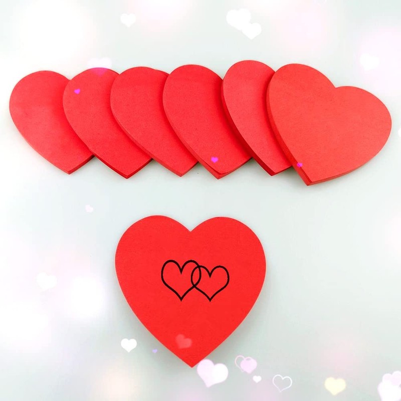 FAZHBARY 6 Pack Heart Shaped Sticky Notes Red Sticky Notes Cute Sticky Notes Self-Stick Sticky Notes Memo Pad Notes for School Office Women Valentine's Day