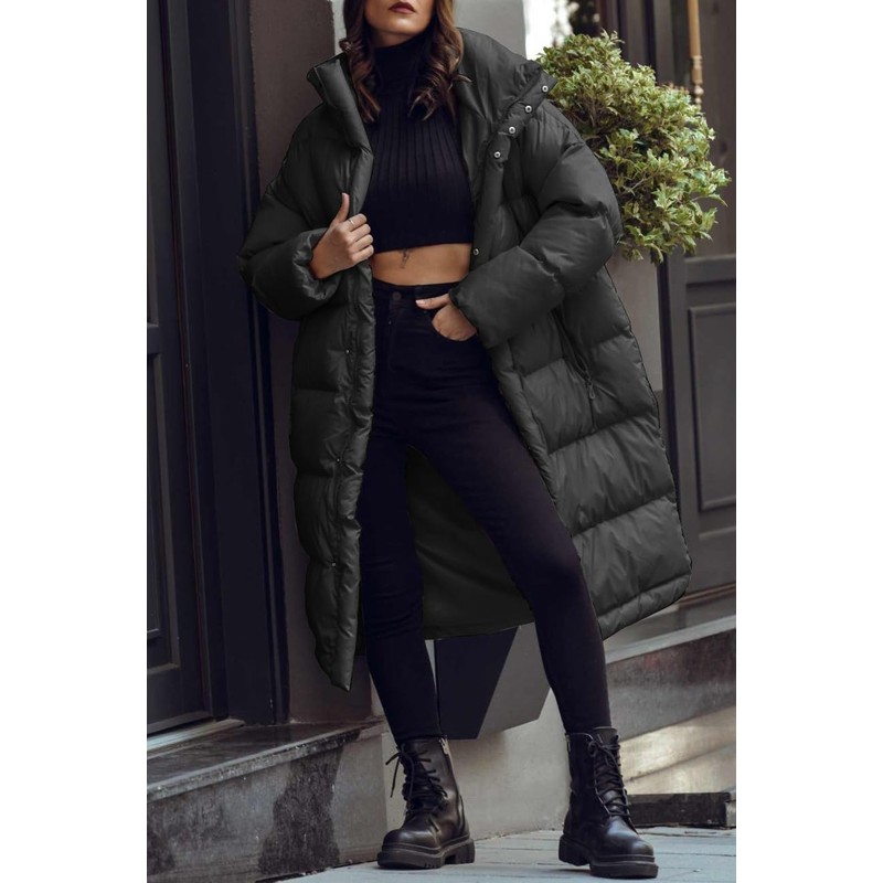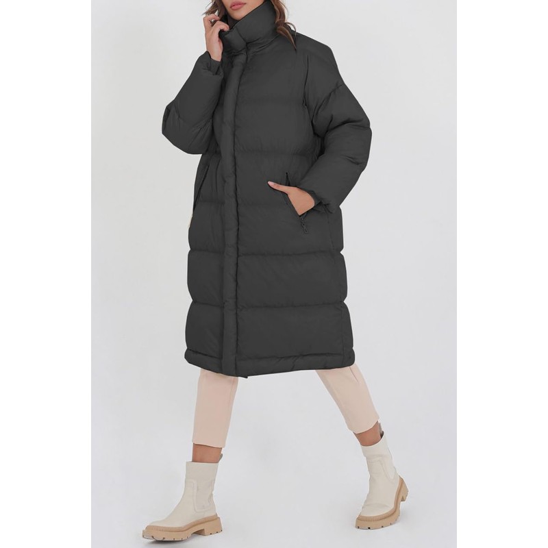 - Stay warm and stylish all winter with our Women's Long Puffer Jacket featuring a stand collar and zip closure, perfect for facing the chilly weather.