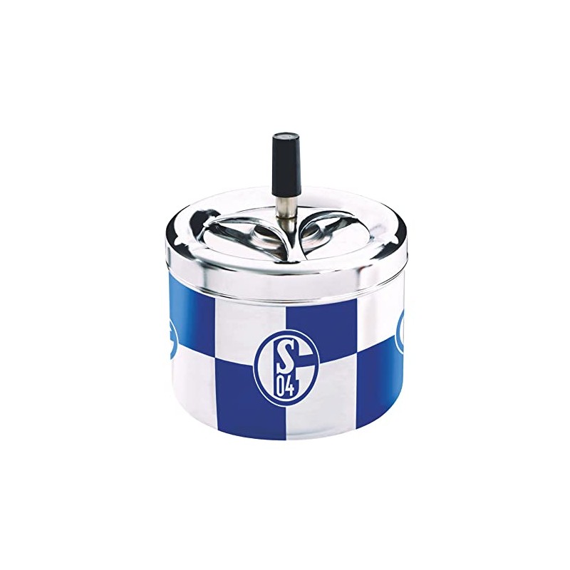 FC Schalke 04 Rotating ashtray in blue and white check pattern with the S04 logo. - Material: metal. Size: approx. 12.5 x 9.8 x 9.8 cm