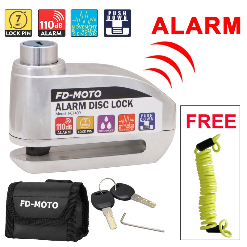 FD-MOTO Alarm Disc Lock & Reminder Cable Silver