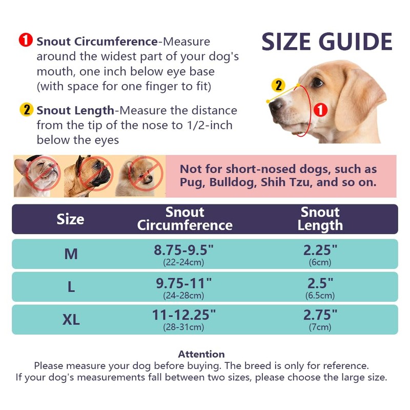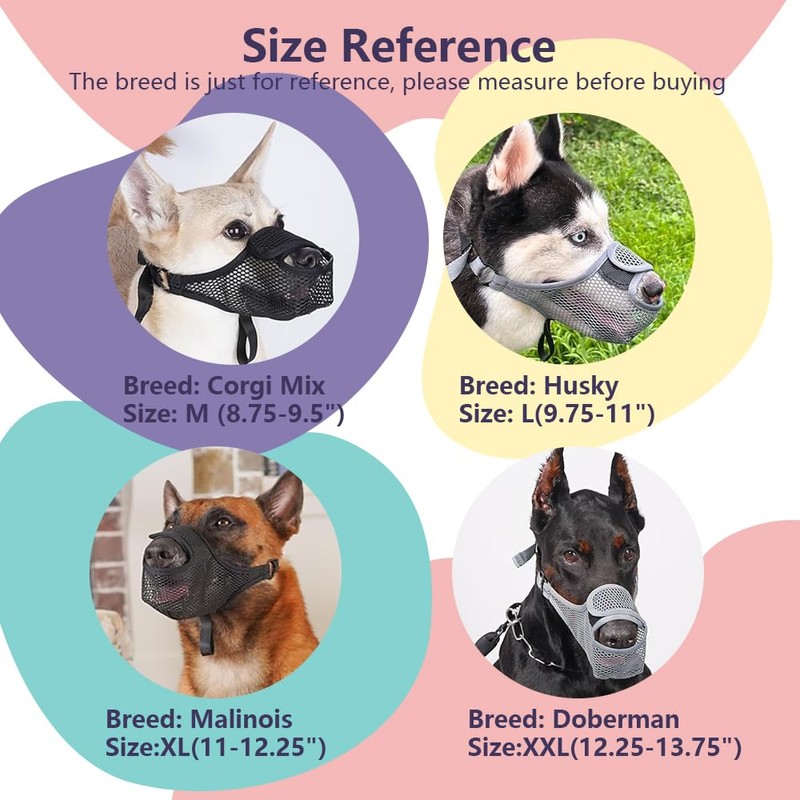 - MAXIMUM COMFORT This soft dog muzzle features a breathable mesh and open design so that your dog can pant and cool down easily. The mesh muzzle reduces the risk of overheating and nose irritation and ensures maximum comfort during active play.