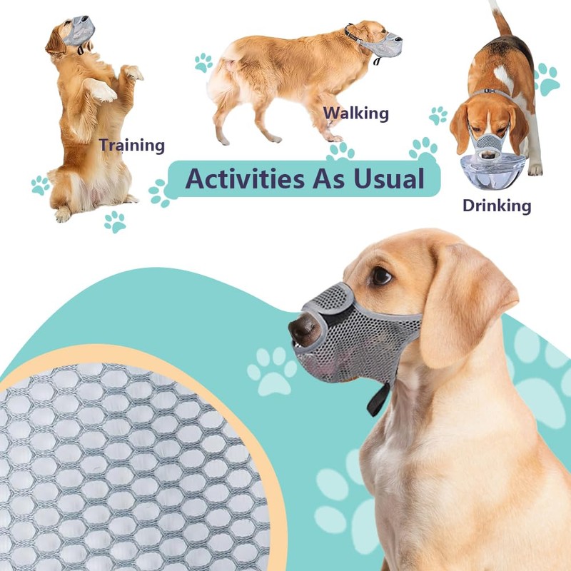 FDEETY Muzzle for Dogs, Soft Mesh Muzzle for Small, Medium and Large Dogs, Adjustable from Biting, Licking and Chewing, Allows Panting and Drinking