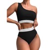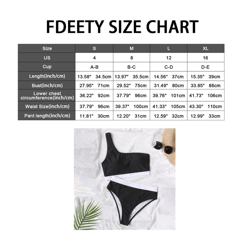 FDEETY Women's Bikini Set Colour Block One Shoulder Wide Underbust Band Asymmetrical Swimwear High Waist Push Up Tummy Control Swimsuit Triangle Swimsuit Two Piece Swimsuit, black