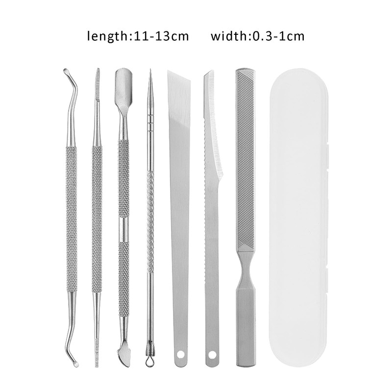 • Rostfrei Und Langlebig - aus rostfreiem Stahl, rostfrei und alterungsbeständig, kann für eine lange Zeit verwendet werden, jedes Stück des 7-teiligen Sets hat seine eigene Funktion, kümmern Sie sich gut um Ihre Füße, sie sind mit rutschfesten Kurven entworfen, leicht zu greifen und einfach zu bedienen, perfekt für die Reinigung von Schutt und Schmutz tief in das Fleisch zu Hause von selbst