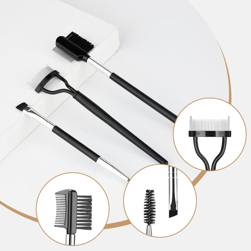 - This product contains 1 eyelash separator, 1 double-ended eyelash brush, eyebrow comb and 1 eyeliner brush and eyebrow brush 2 in 1 brush head pen, a great brush set for your daily beauty needs
