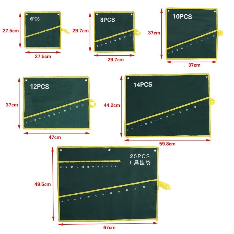 When you take a lot of tools wrench, you have such trouble, the tool is too much, can not immediately find the corresponding tool. Then you need this kit, and you will be able to put the wrench and other tools together. Convenient for you to repair. Made of high quality canvas, . Simply slot your tools in the pockets and roll up. Ideal for storing spanners or general hand tools. Portable design, easy to carry. Dual use bundle type hanging bag.