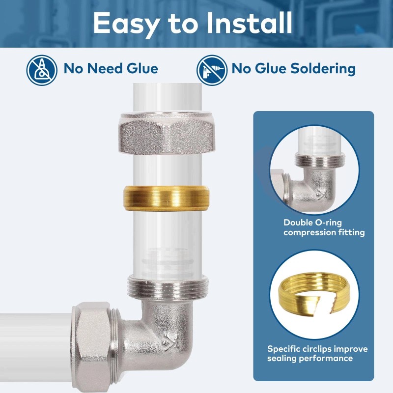 SEALING:Double O-ring compression style, Max 200 PSI working pressure,ensures 100% sealing in high working pressure.Connect with no glue, soldering, or crimping is required, allowing for easy removal of tubing if necessary.