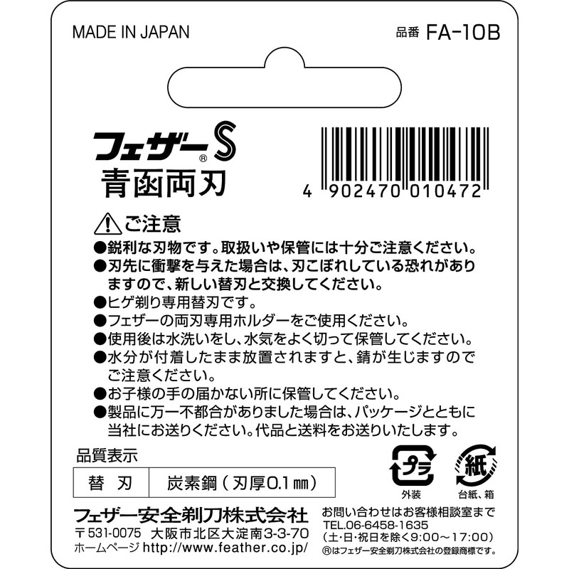 FEATER Blue Box Double-edged Razor, Made in Japan, Carbon Steel Razor, Men's, Replacement Blades, 10 Pieces (x1)