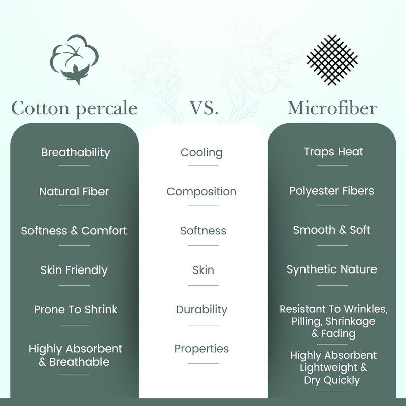- 100% Cotton Percale Weave Sheet Set: Percale is known for its crisp feel and matte finish. More durable than satin, percale gets softer with each wash, without pilling, fading or tearing. Cotton percale is breathable and cool to the touch to prevent overheating and sweating at night, so you can sleep more comfortably. With so many trendy colors and patterns to choose from, our classic percale bedding can be mixed, matched